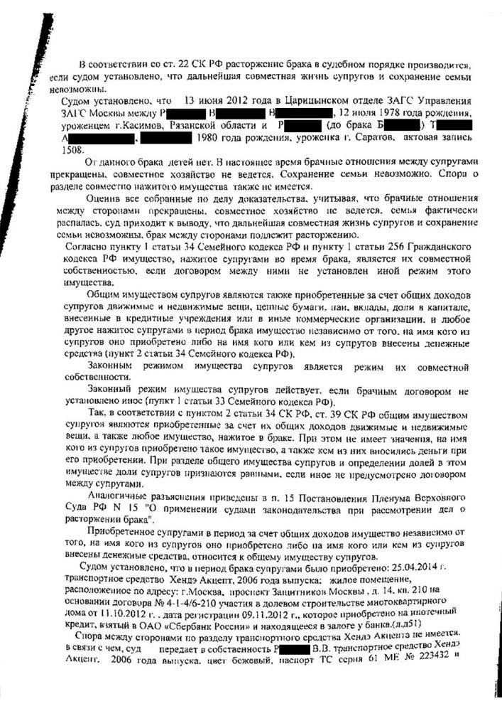 Расторжение брака и раздел совместно нажитого имущества